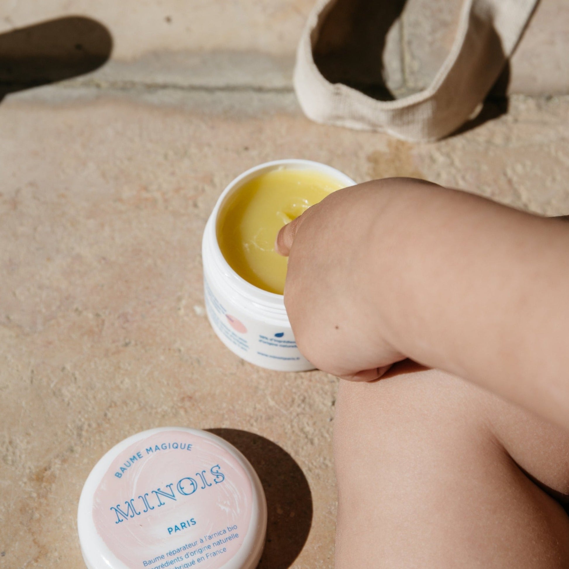 The Magic Balm, a multi-use repairing balm acts against bruises, blows, bumps and all the little sores of everyday life. It is suitable for all skin types, even the most sensitive and can be used locally on very dry and rough areas or sunburns.